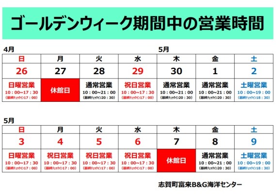 ゴールデンウィーク期間中の営業時間は下記の通りとなります。