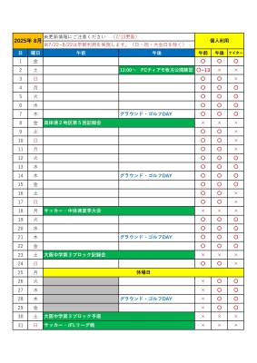 たまゆら陸上競技場スケジュール(8月)
