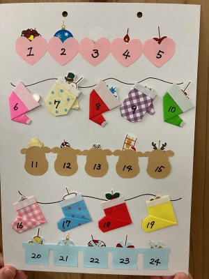 一ヶ月のカレンダーを工作します。今回はクリスマスバージョンです🎄
