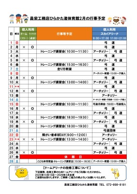 2月の行事予定をご案内させていただきます。