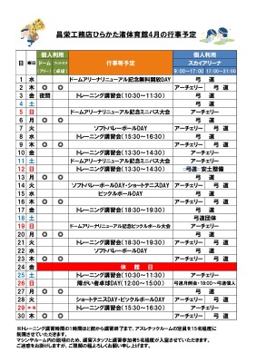 4月の行事予定をご案内させていただきます。