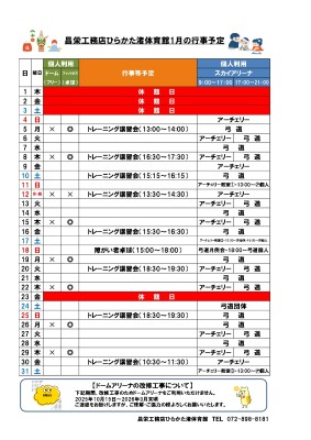 1月の行事予定をご案内させていただきます。