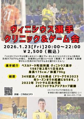 『現役Fリーガー★ペスカドーラ町田所属 ヴィニシウス選手クリニック&ゲーム会』開催のお知らせ