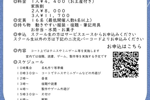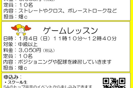 スクール生の方はサービスエースのイベントから申込ください。 スクール生以外の方はこちらから