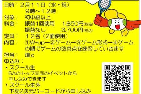 2月23日(月・祝)の申込みはテニスベアからお申込みください