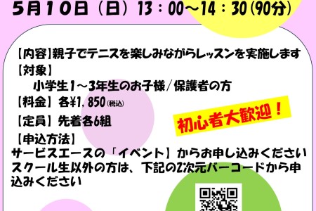 スクール生の方はサービスエースからお申込みください スクール生以外の方は下記のURLからお申込みください https://ms-tenniscollege.co.jp/sausa/2026/03/03/2026%e5%b9%b44%e6%9c%885%e6%…