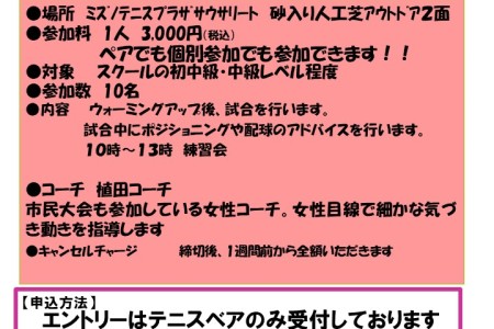 2026年4月6日(月)女子ダブルス初心級 お申込みはテニスベアからお願い致します