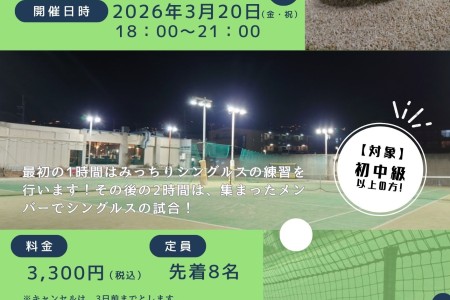 2026年3月16日(月)女子ダブルス初中級 お申込みはテニスベアからお願い致します