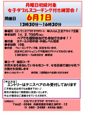 5月~6月個別参加OK!初級対象!女子ダブルスコーチング付き練習会