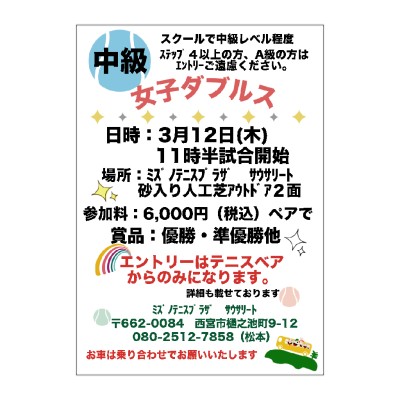 2026年3月12日(木)女子ダブルス中級
