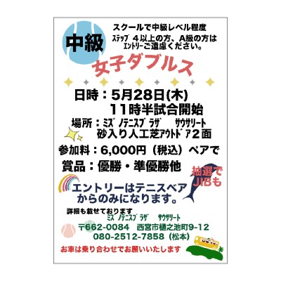 2026年5月28日(木)女子ダブルス中級