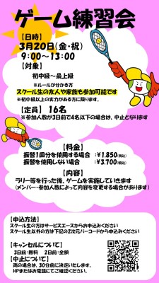 2026年3月20日(金・祝)ゲーム練習会