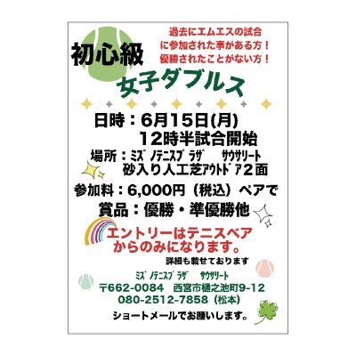 2026年6月15日(月)女子ダブルス初心級