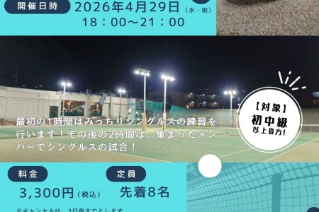 5月4日(月・祝)個別参加OK!初級対象!女子ダブルスコーチング付き練習会