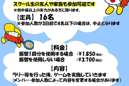 2026年4月29日(水・祝)がっつりラリー&ゲームレッスン